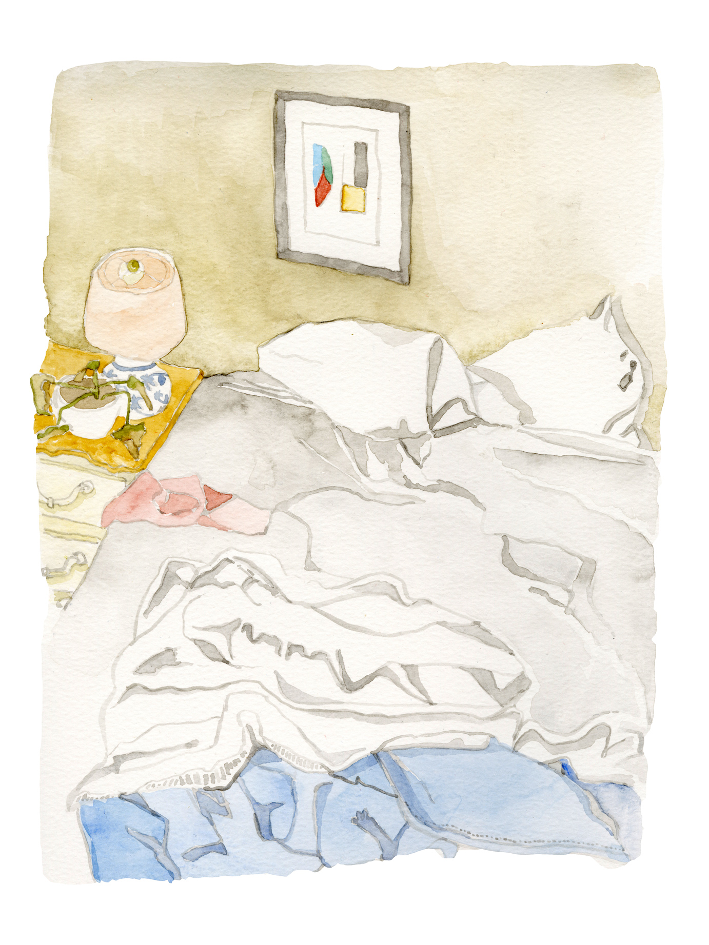 “I lie on the bed, with my face burrowed into one of the cat’s bellies, jealous of how content she is to have nothing going on at all.”